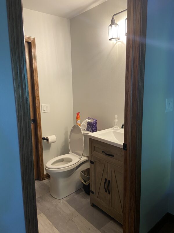 Our solutions put their style wants and needs at the forefront. With this first floor remodel, the family would get a better functioning kitchen, extra seating from the kitchen island and peninsula, a full bath on the first floor, a practical-sized laundry room, and a grand front entrance.